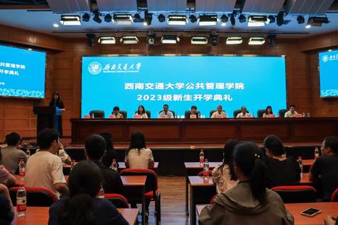 2023年9月2日,西南交通大学公共管理学院2023级新生开学典礼在九里校区国际会议厅隆重举行。学院党委书记高凡、院长王永杰、副院长雷叙川、副院长雷斌、院长助理彭川宇、公共管理系主任刘桂花、政治系主任唐志红、法学系主任魏琼,各专业、研究中心教师代表以及教务员、学生辅导员等出席本次开学典礼。典礼由学院党委副书记、学生工作组组长余小英主持。