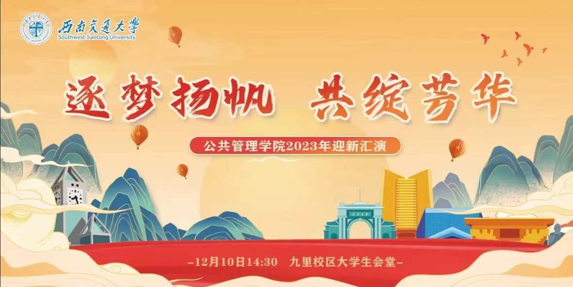 岁序更替,华章日新。渐黄的银杏象征着旧年的结束,敲响的钟声预示新年的到来。值此辞旧迎新之际,西南交通大学公共管理学院于12月10日下午在九里校区大学生会堂举办“逐梦扬帆,共绽芳华”2023年迎新汇演。在这场公管大家庭的盛会中,“管小苗”、全体老师与学生载歌载舞欢聚一堂!
