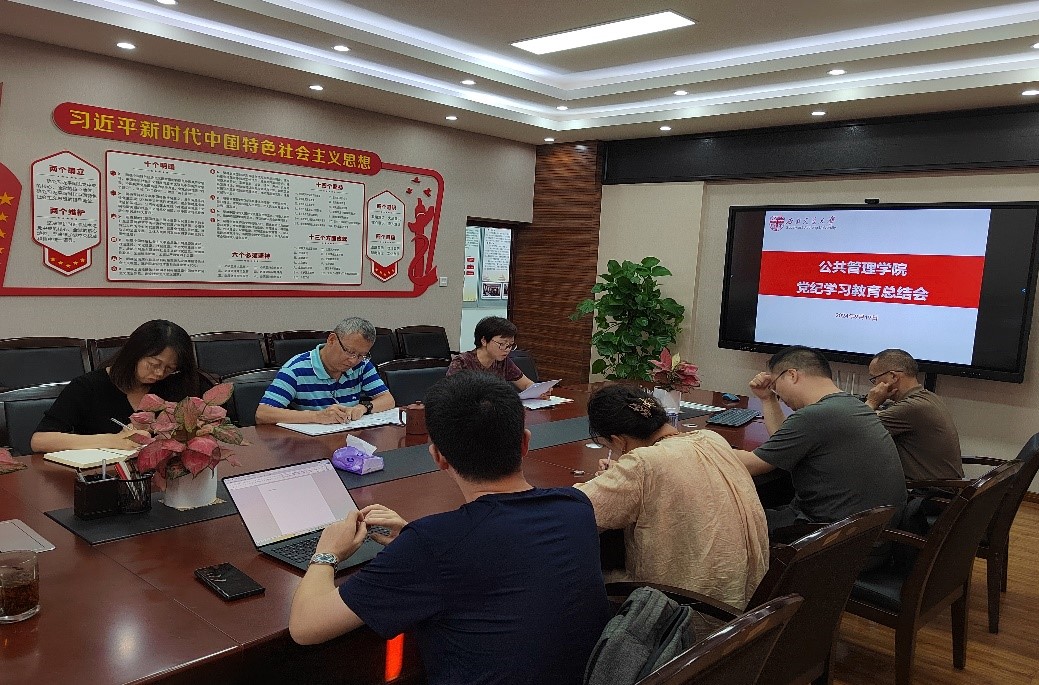 根据中央层面工作专班《关于做好党纪学习教育总结的通知》要求及学校党纪学习教育总结会议精神,9月19日下午4:00,公共管理学院党委在九里校区0212召开党纪学习教育总结会,对党纪学习教育开展情况进行全面梳理总结。