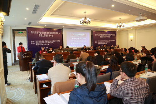2015年12月24日,四川省法学会劳动和社会保障法学研究会2015年学术年会暨换届大会在西南财经大学光华校区召开。四川省法学会秘书长魏义洪、西南财经大学副校长张邦富、西南财经大学法学院院长高晋康、西南民族大学法学院院长王允武、四川省高级人民法院民三庭副庭长杨丽、成都市劳动争议仲裁院院长王健、西南财经大学公共管理学院分党委书记章群等出席本次年会。来自四川省人民政府法制办、西南交通大学、约翰·霍普金斯大学、四川省社会科学院、西南财经大学、四川大学、西南石油大学、中共四川省委党校、四川省公安厅及律师事务所与企事业单位的代表参加了会议。我院杨珊副教授、邓君韬副教授及硕士生于子芮、牟朗宇、周璇、伏浩、柳翠等参加了本次年会。