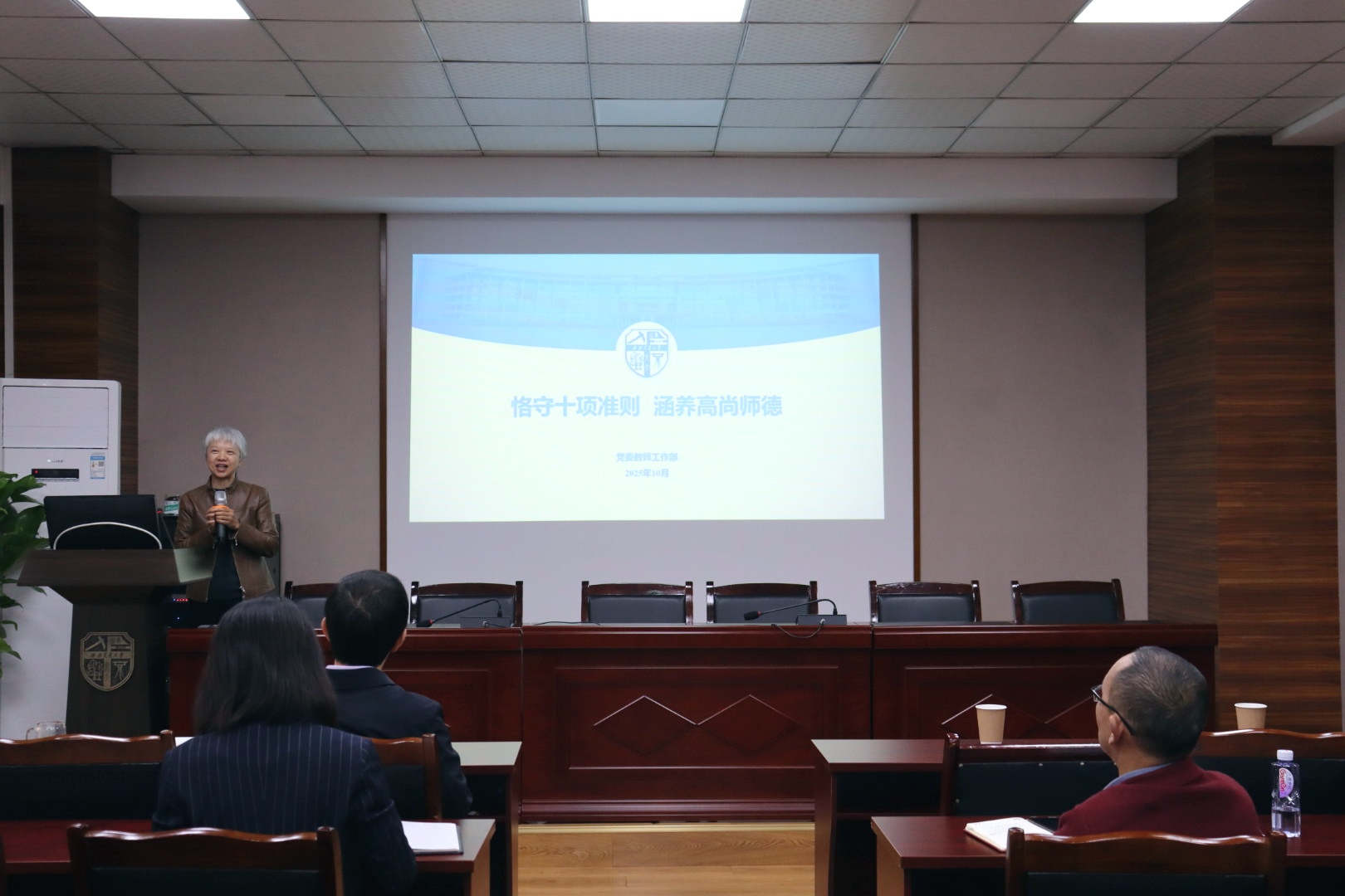 她特别强调,全体教师要严格规范学术会议参与行为,将更多精力投入到教学科研主业中;在项目评审等工作中,必须严格遵守纪律要求,严禁 “打招呼”“跑票” 等违规操作,共同营造风清气正的学术生态。她呼吁全体教职工以准则为标尺、以案例为警示,自觉涵养高尚师德,践行育人使命。
