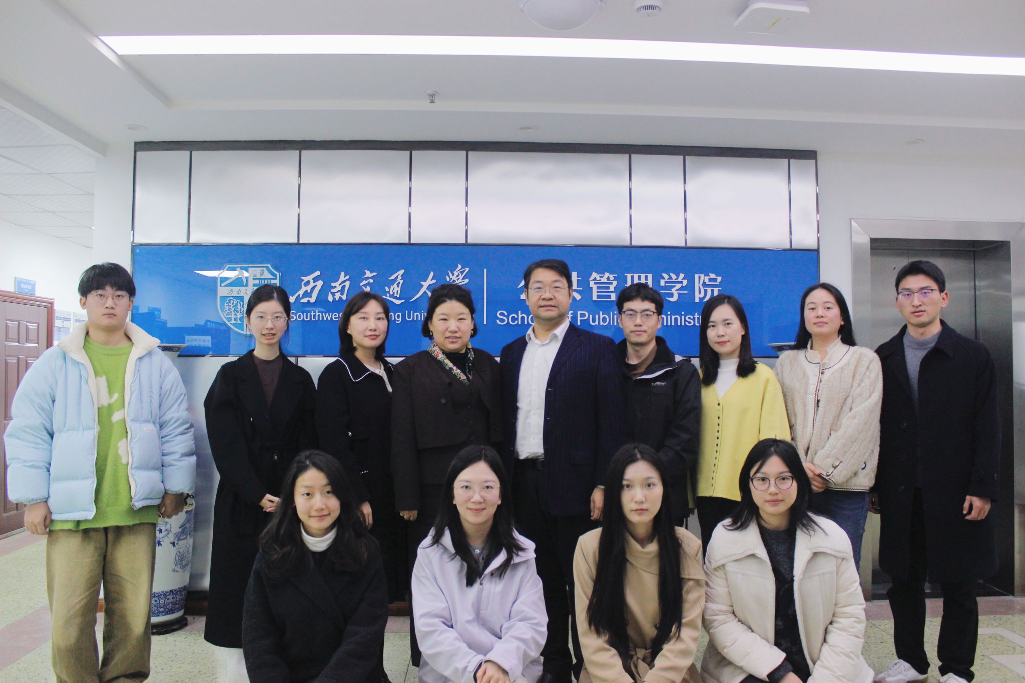 2025年11月26日上午,西南交通大学团委书记武俊、副书记郑源,青年发展办公室主任李振宇、组织工作办公室主任张敬文,以及校青年传媒融媒体中心、校研究生会团学骨干一行,赴公共管理学院开展共青团工作专项调研座谈。学院党委副书记薛婧、学院团委书记莫太林、学院团委副书记石珮锦、许楠、陈泽东以及相关专项工作负责人参加会议。会议由莫太林主持。