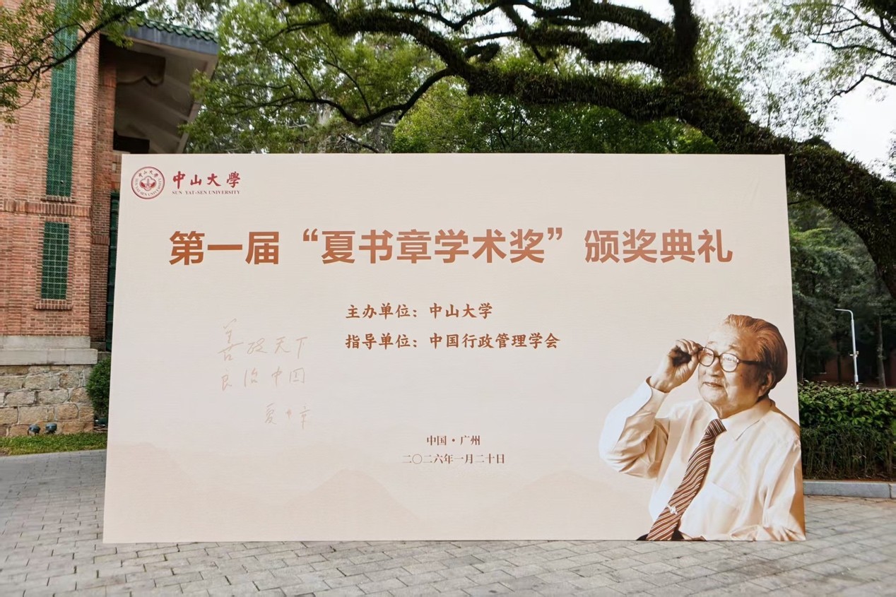 2026年1月20日,时值中国当代公共管理学主要奠基人夏书章先生诞辰107周年纪念日,第一届“夏书章学术奖”颁奖典礼在中山大学南校园怀士堂隆重举行。经形式审查、初评、匿名通讯评审及现场终评,18位学者分别获得优秀学术著作奖(3人)、优秀学术论文奖(5人)、优秀博士论文奖(3人)和优秀博士论文奖提名奖(7人)。