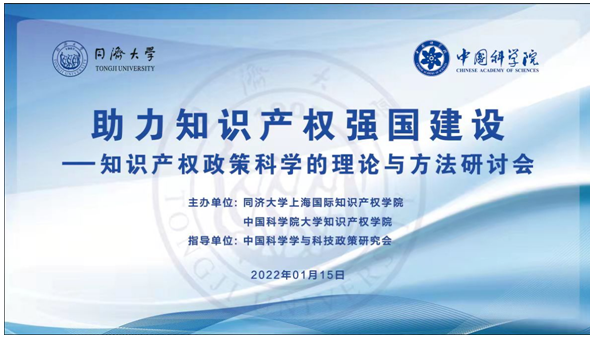 为深入贯彻落实《知识产权强国建设纲要(2021-2035)》有关精神,有力支撑知识产权强国建设,引领高质量发展,2022年1月15日,由同济大学与中国科学院大学共同主办、中国科学学与科技政策研究会支持的“助力知识产权强国建设——知识产权政策科学的理论与方法研讨会”在同济大学组织召开。我院刘鑫副教授与来自于北京、上海、广东、江苏、四川、辽宁、浙江、湖南、安徽等10余个省市的专家学者以线上线下的形式参加了此次会议,与会者围绕国家治理体系与国家治理能力现代化建设过程中知识产权政策科学的基础理论与研究方法、知识产权政策内容体系、人才培养及学科建设等问题进行了广泛和深入的研讨。