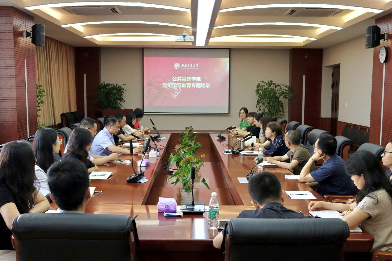 为深入学习贯彻修订后的《中国共产党纪律处分条例》(以下简称《条例》),扎实推进党纪学习教育,推动《条例》入脑入心,2024年6月11日上午9:00,公共管理学院党委于J01416会议室开展党纪学习教育专题培训。本次培训邀请学校纪律检查委员会副书记兼纪委办公室主任张国正作《学好用好条例,守好纪律底线》的专题分享。公共管理学院领导班子成员、各教工党支部书记、各学生党支部书记参加培训,学院党委书记高凡主持本次培训。