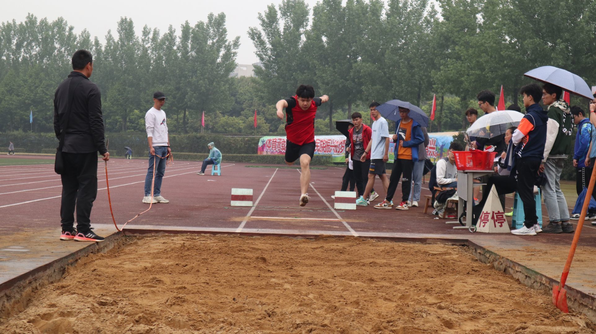 2021年4月17日上午,天空中飘起小雨,但这似乎并没有影响运动员和观众们的情绪,看台上鼓声震天,赛场上运动员热情依旧。伴随着微冷的晨风与燃烧的热血,男子立定跳远三级跳(决赛)、女子400米(决赛)、混合10×50米(决赛)三个项目如期举行。