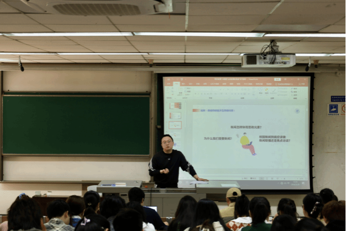 为充分发挥全媒体时代宣传工作的先行先导作用,营造良好的宣传环境和舆论氛围,进一步提升学生新闻素养和创新能力,提高学生新闻宣传工作水平,公共管理学院邀请物理科学与技术学院团委书记、学工组副组长雍腾老师为我院学生新闻宣传骨干开展以“用好叙事‘六要素’,从讲故事的角度‘讲’新闻”为题的培训活动,培训于2024年3月28日下午在九里校区4210教室举行。公共管理学院新闻中心、学生会、研究生会、青年志愿者协会、团建中心、党建中心负责宣传工作的学生骨干,各班宣传委员,以及学生等共计一百五十余人参加了培训。