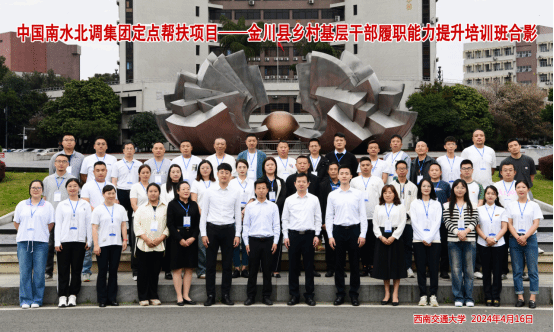 2024年4月16日,中国南水北调集团定点帮扶项目——金川县乡村基层干部履职能力提升培训班在西南交通大学九里校区顺利开班。中国南水北调集团组织人事部侯霁桐同志,金川县委常委、组织部长聂采堂同志参加了开班仪式。西南交通大学公共管理学院院长王永杰同志向全体学员做校史、学院等情况汇报,本次培训旨在提升金川县基层干部综合能力,设置了:领导力与管理思维创新;2024年全国两会暨省委十二届四次全会精神解读等专题课程。